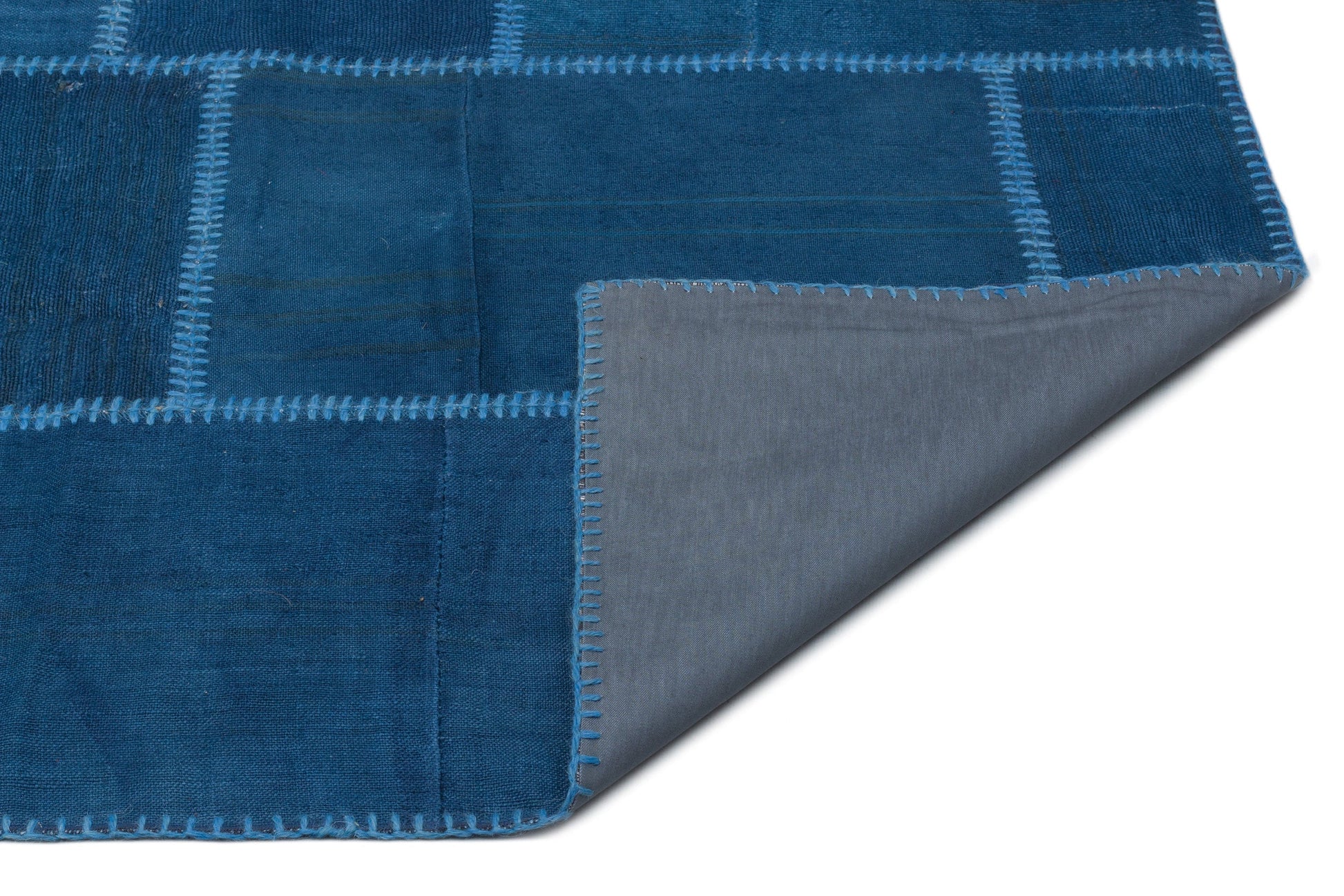 This blue patchwork rug measures 6 feet 5 inches by 9 feet 9 inches, providing ample coverage for medium to large rooms. The soft wool rug offers natural fiber benefits such as breathability and resilience, while its durable area rug construction withstands heavy foot traffic without losing texture or color vibrancy. Tested for quality and durability, this wool area carpet comes with a satisfaction guarantee from Apex Unique, reflecting its superior craftsmanship and authenticity.