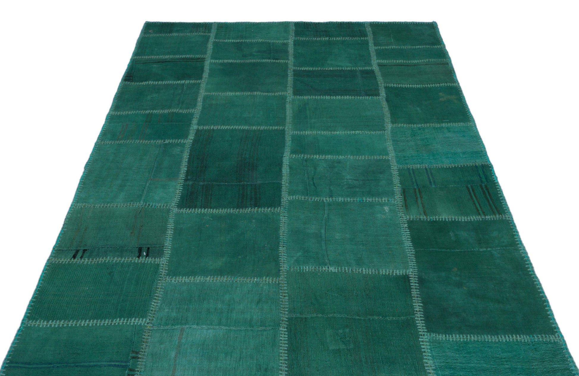 Teselya Green Patchwork Wool Handmade Area Rug 5'0" x 7'7"