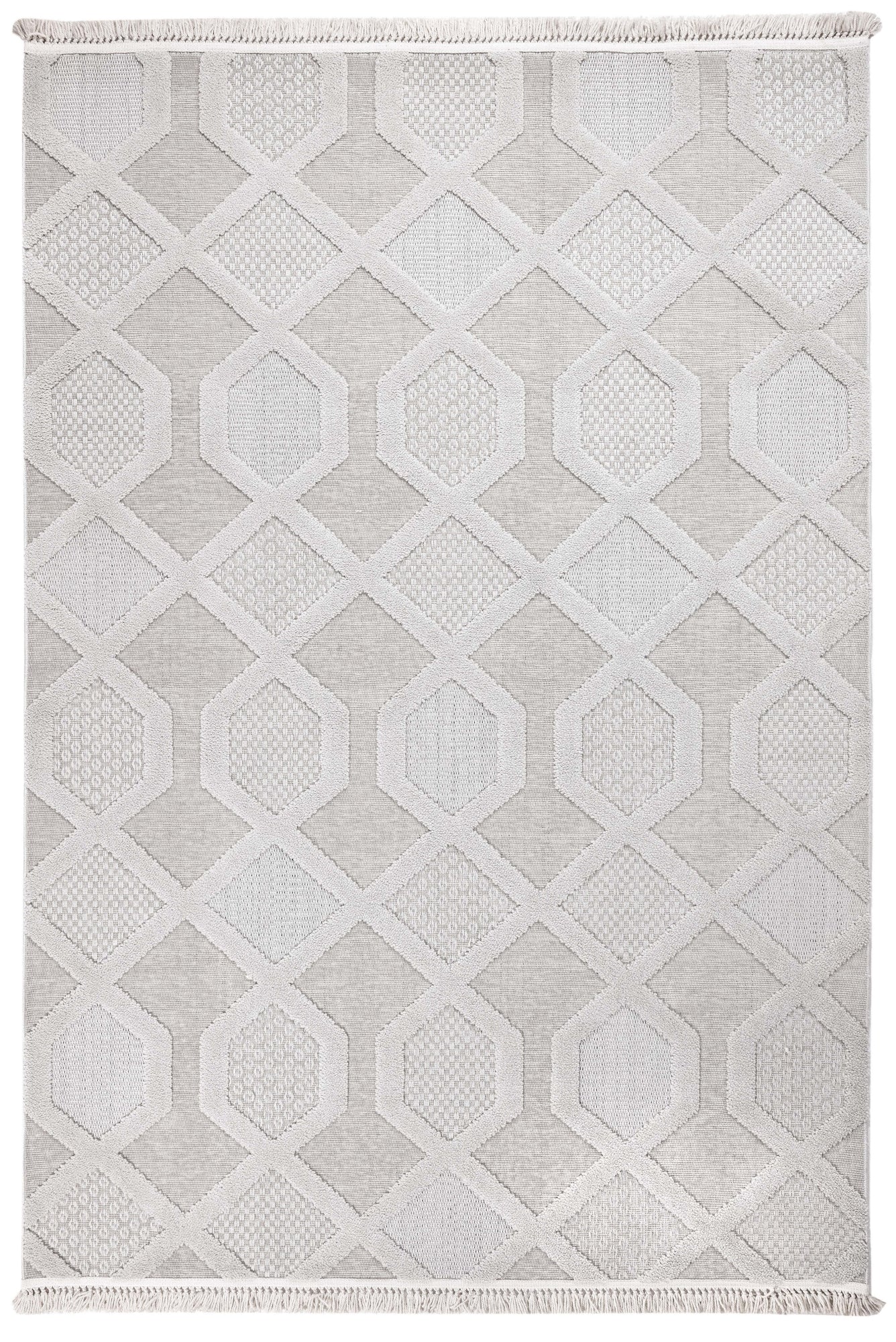Grey Geometric Area Rug – Machine Made Chenille Carpet With Cotton Base