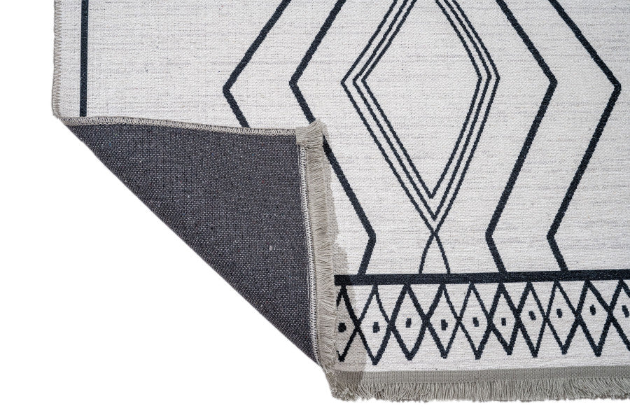 Geometric Cotton Rug – White Chenille Area Rug with Digital Print Design
