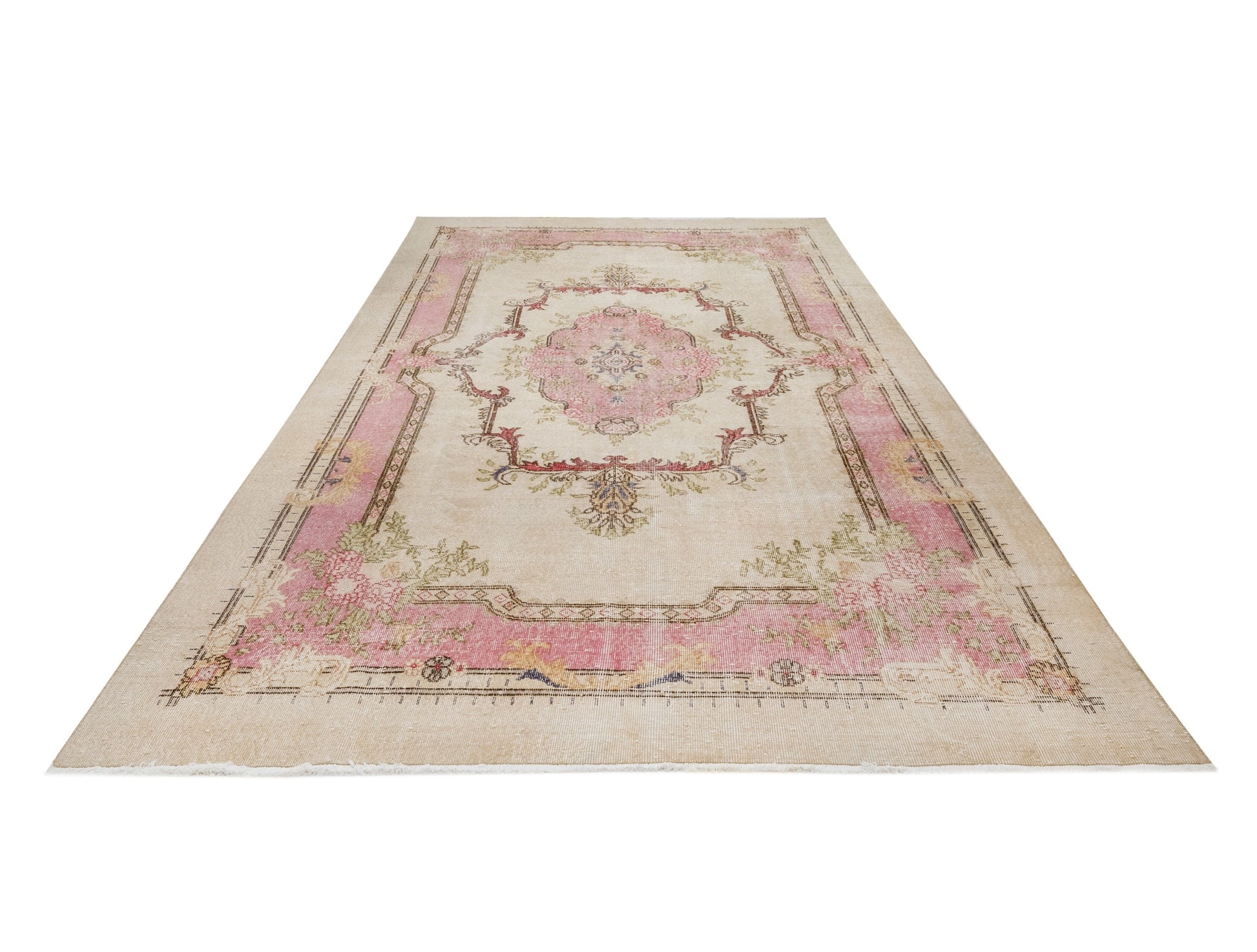 Handmade Wool Rug – Vintage Beige Medallion Cotton Blend Classic Area Carpet 6'11"x10'4"