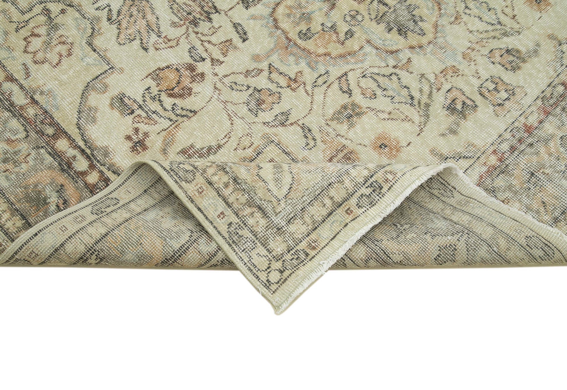 This Vintage Handmade Area Rug combines timeless style with durable craftsmanship to enhance any living space. Measuring 6'3'' x 11'0'', this hand woven rug is crafted from natural fibers including soft cotton and resilient wool, providing a plush texture and long-lasting use. Each Turkish vintage rug is a traditional hand knotted carpet, aged between 30 to 70 years, carefully selected and restored using special washing techniques that preserve and neutralize its original beige tones. Ideal as a living room rug, it offers a classic vintage style that complements both modern and traditional decor.
