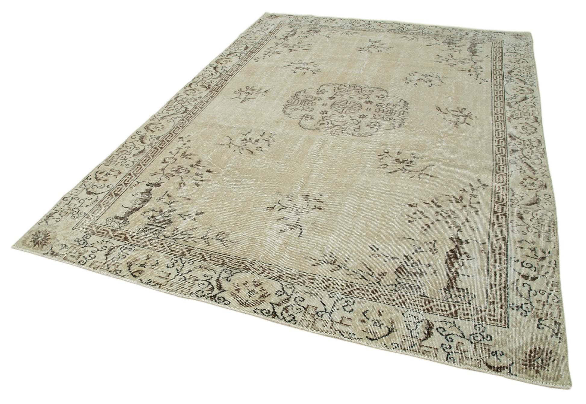 Handmade Wool Area Rug – Vintage Cotton Rug Beige 6'10''x9'9'' Classic Living Room Carpet