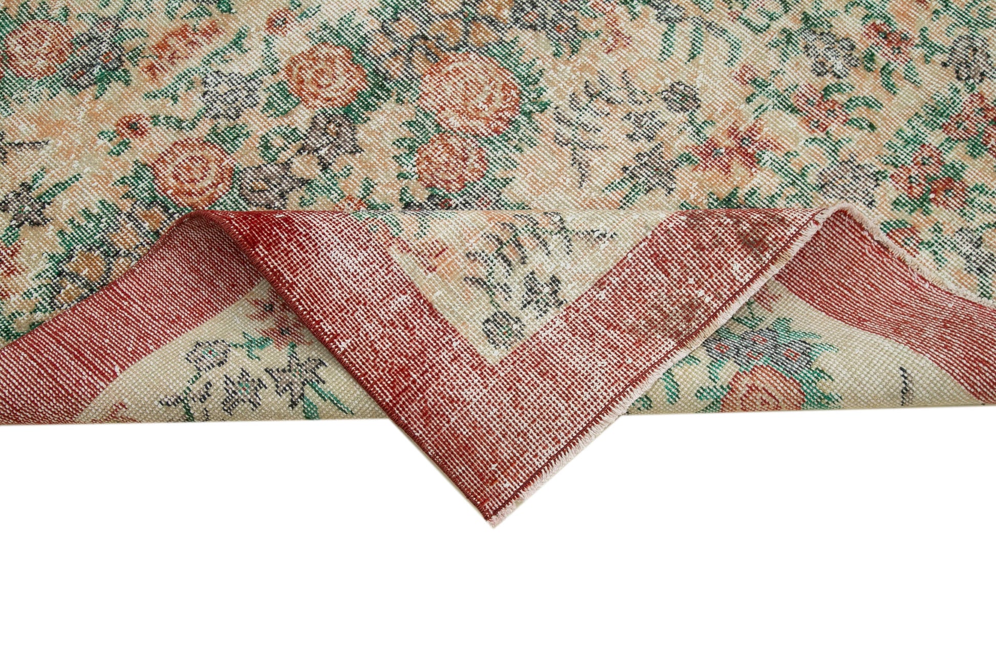 This handmade wool area rug offers a timeless blend of vintage charm and durable craftsmanship, perfect for elevating any living space with classic vintage decor. Measuring 6'10'' x 9'11'', this beige area carpet is a traditional hand knotted Turkish wool rug crafted from natural fiber rug materials including soft cotton weave and high-quality wool. Each vintage cotton rug is hand woven carpet style, carefully selected from 30 to 70-year-old Turkish carpets, then cleaned and restored using special washing techniques that neutralize the original color while enhancing subtle shades for a neutral color rug appearance.