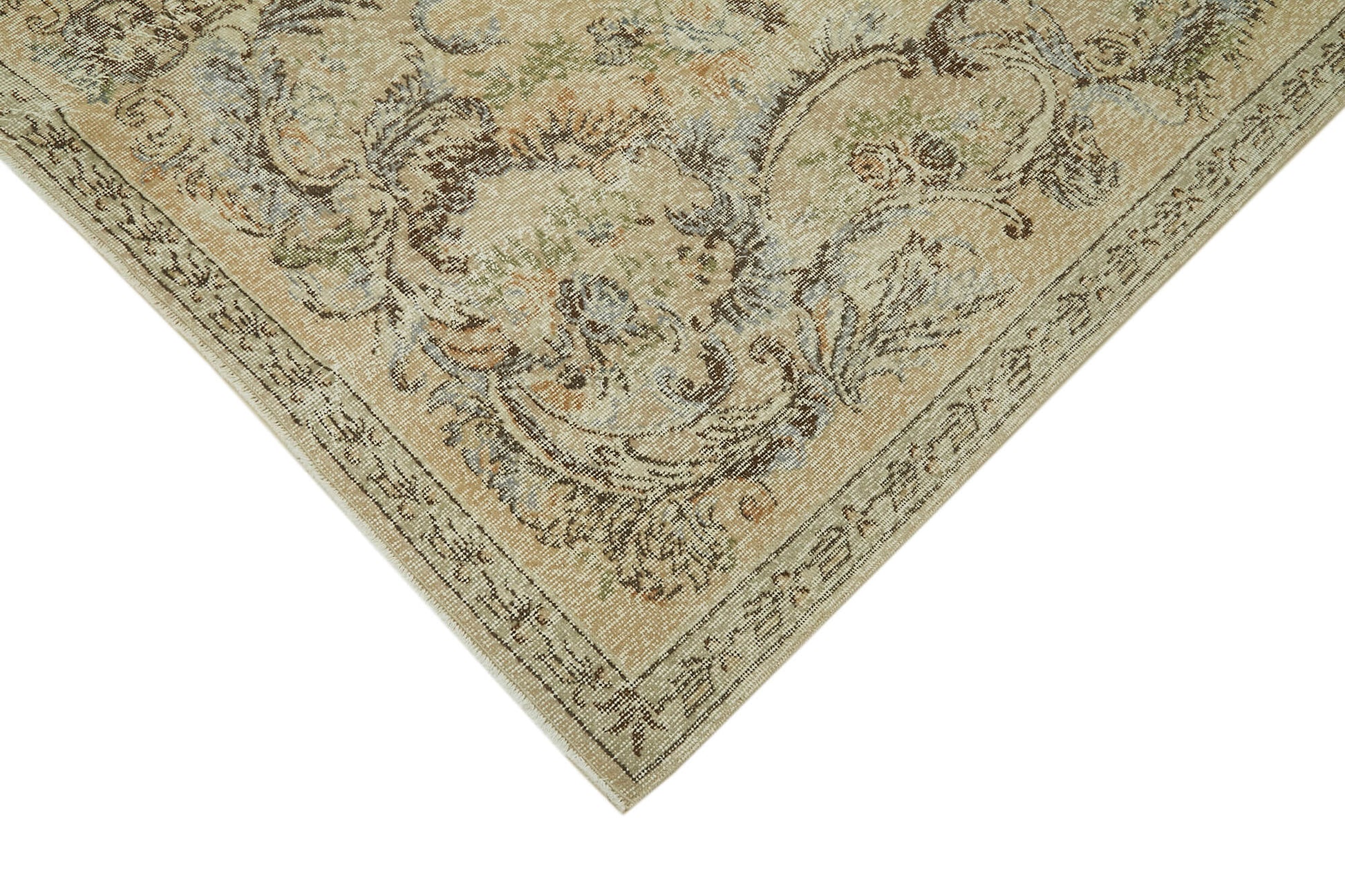 This Vintage Wool Cotton Rug is a handmade area rug that combines traditional Turkish craftsmanship with durable natural fibers to bring rustic vintage style into your home. Measuring 6'9'' x 10'1'', this beige wool rug features a soft textured surface crafted from a wool and cotton blend, providing both comfort and long-lasting durability. Each hand knotted area carpet is carefully hand woven using vintage wool cotton materials sourced from 30 to 70-year-old Turkish hand knotted carpets. These natural fiber rugs undergo a meticulous cleaning and washing process that neutralizes and subtly alters their original color shades, resulting in a unique neutral color rug perfect for any living space.