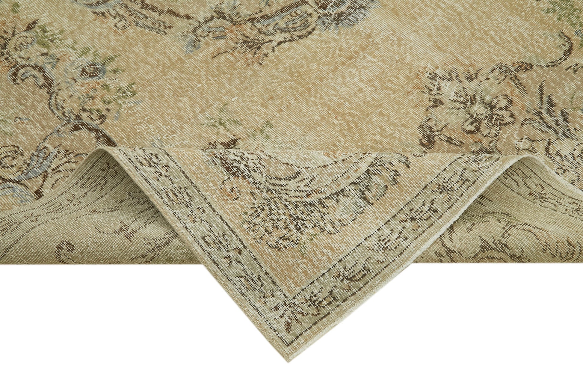 Vintage Wool Cotton Rug - Handmade Area Rug 6'9'' x 10'1'' Beige Soft Textured