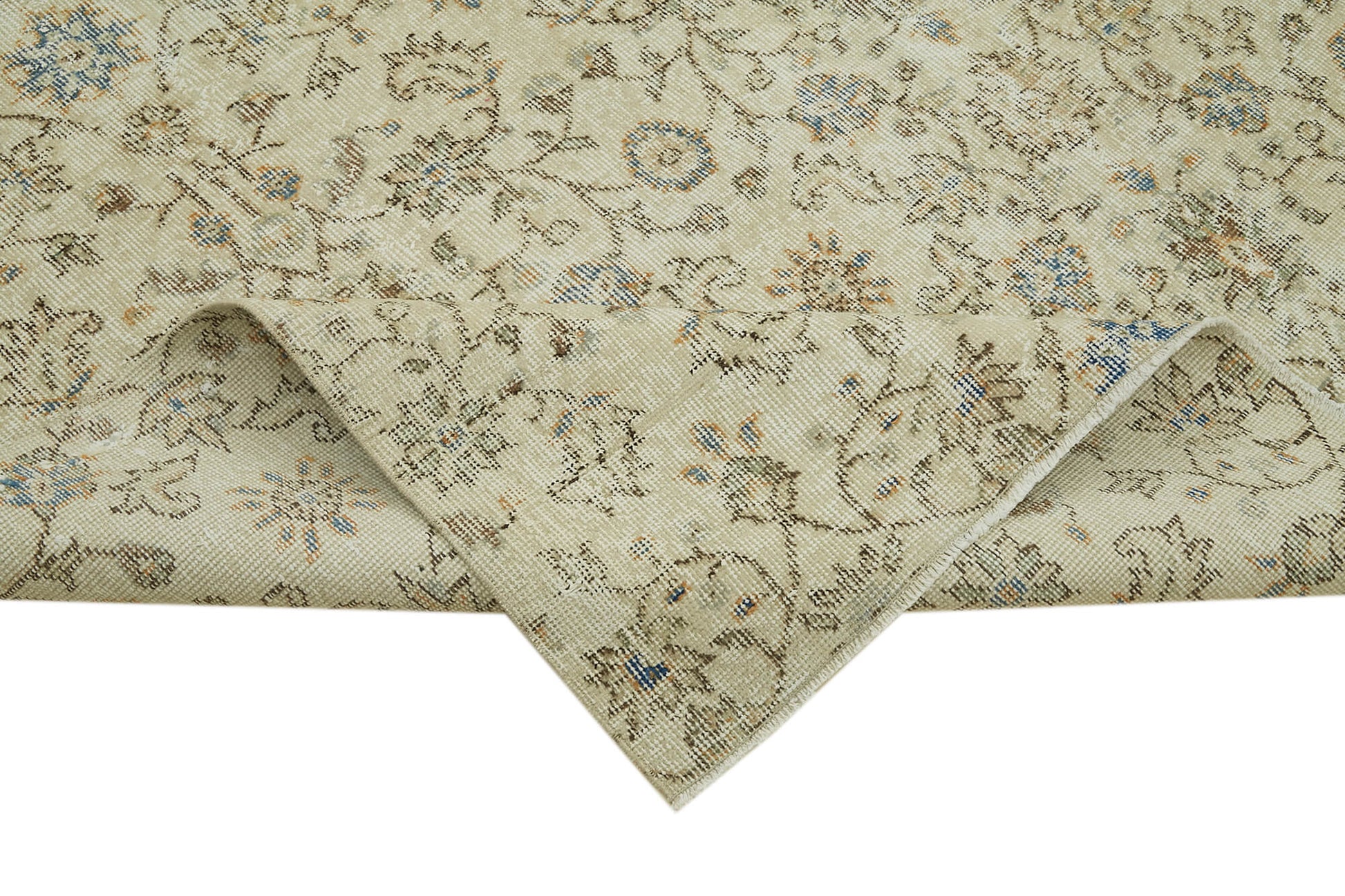 The Vintage Beige Vintage Wool Cotton Handmade Rug 6'11'' x 10'0'' is a premium vintage wool cotton rug designed to bring timeless elegance and durable comfort to your living room. This handmade area rug features a soft cotton blend and natural fiber rug construction, offering both warmth and resilience. Crafted from traditional hand knotted Turkish vintage rugs aged between 30 and 70 years, each piece is carefully selected, cleaned, and restored to preserve its unique character while neutralizing original colors with special washing techniques. The durable wool carpet ensures long-lasting use, making it an ideal handcrafted floor covering for boho style decor enthusiasts seeking authenticity and quality.
