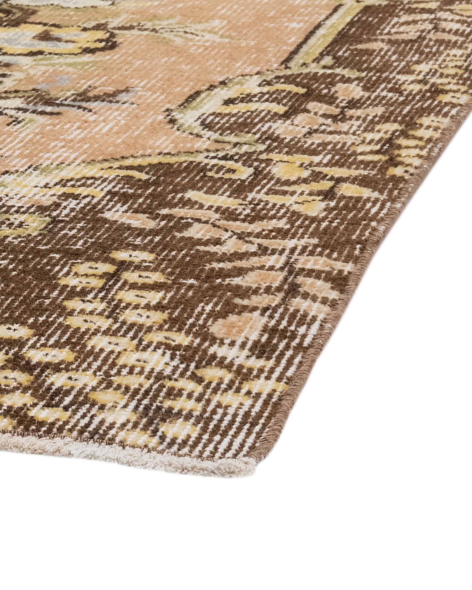 This handmade wool cotton rug brings timeless charm and durability to any living space, featuring a vintage brown medallion carpet design that enhances your home's warmth and style. Crafted from a wool cotton blend rug, this hand woven rug combines the softness of natural fibers with robust durability, making it an ideal living room area rug that lasts for years. Each Anatolian handmade carpet is carefully selected, cleaned, and washed to preserve its classic medallion design and retro style floor covering appeal.