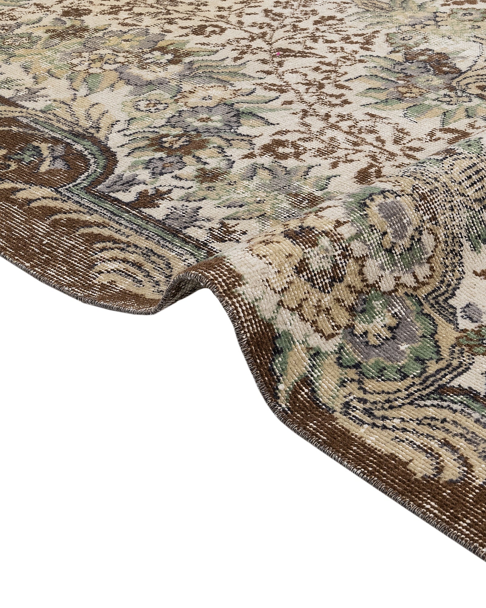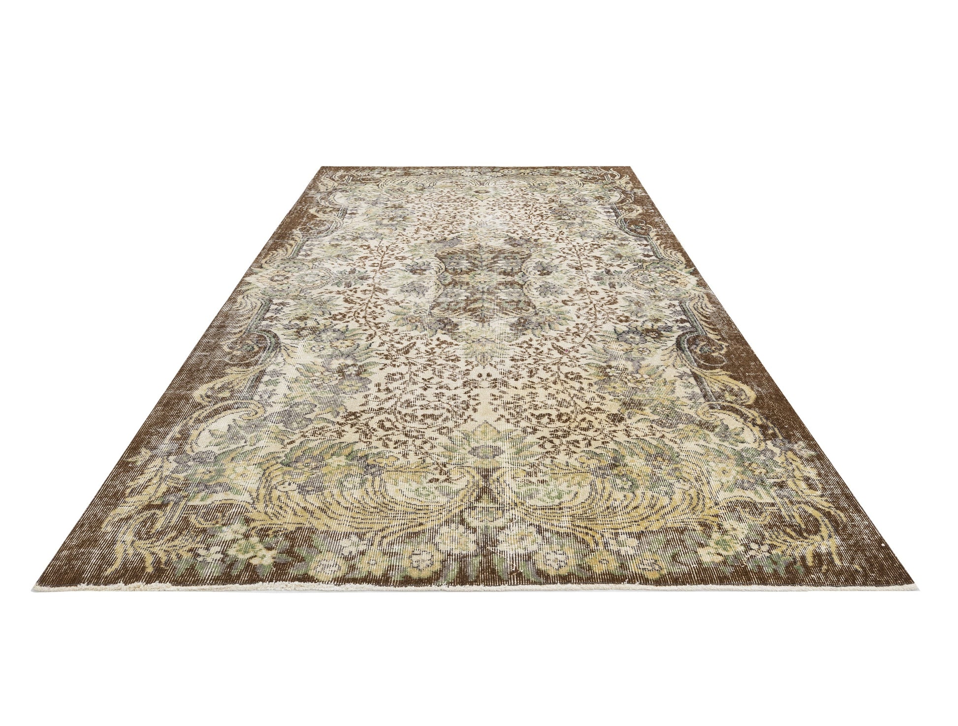 This handmade wool rug brings timeless charm and durability to your living space. Crafted as a vintage brown medallion carpet measuring 5'8" x 8'8", this wool cotton blend rug offers a soft yet resilient floor covering perfect for any room. The handmade Anatolian carpet is woven from natural fibers, combining the warmth of wool with the strength of cotton for lasting use. Each artisan crafted rug undergoes careful selection, cleaning, and washing to ensure quality and authenticity.