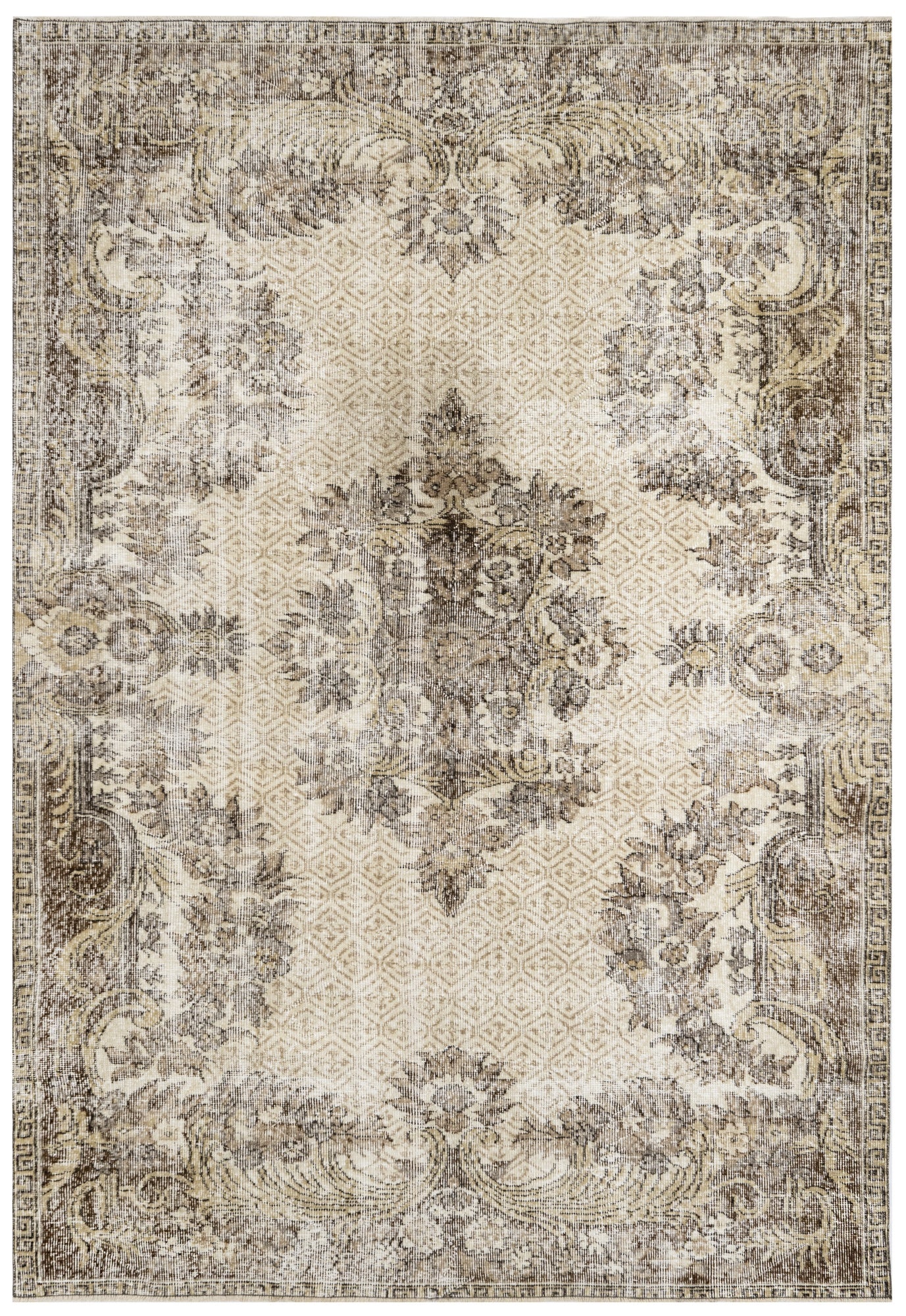 Handmade Wool Rug - Vintage Brown Medallion Cotton Blend 5x9 Feet Area Carpet