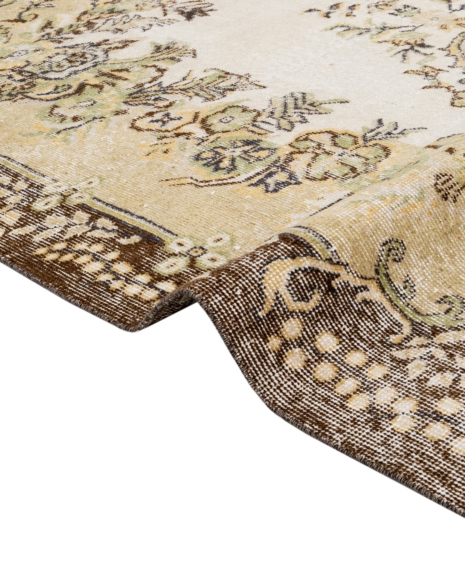 This handmade wool rug brings the charm of traditional Turkish carpets into your living room with a vintage brown medallion design. Crafted as a 6x9 area rug, this cotton blend rug combines the durability of wool with the softness of natural fibers to create a comfortable and long-lasting floor covering. Each Anatolian handmade rug is carefully hand woven, preserving the retro style rug aesthetic while providing a soft wool texture that enhances any interior. The handmade wool rug is designed to deliver warmth, durability, and timeless elegance for modern homes.