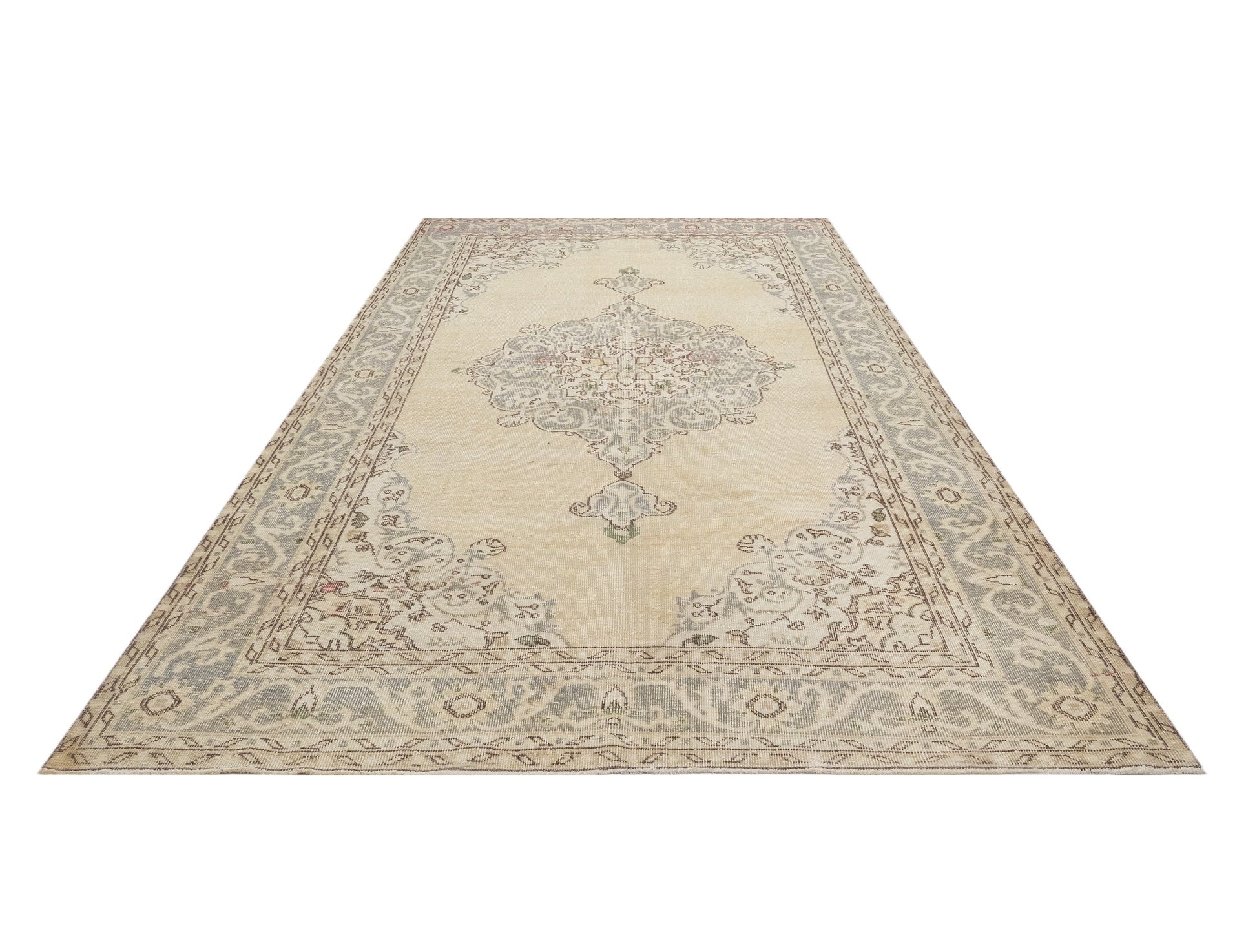 This handmade wool rug, a vintage wool carpet crafted with care, brings timeless elegance to your living space. The Handmade Wool Rug - Vintage Grey Medallion 4x9 Cotton Blend Carpet features a traditional medallion design that revives the charm of Anatolian handmade carpets from the 1960s. Made with a durable wool flooring base combined with a soft cotton texture, this hand woven rug 1960s style offers both comfort and resilience for everyday use. Each piece is carefully selected, cleaned, and washed to ensure quality and longevity, making it an ideal 4x9 area rug for your living room or any high-traffic area. This Eskitme style carpet by Şark Halı rugs carries decades of heritage and craftsmanship, delivering a unique blend of vintage style and modern durability.