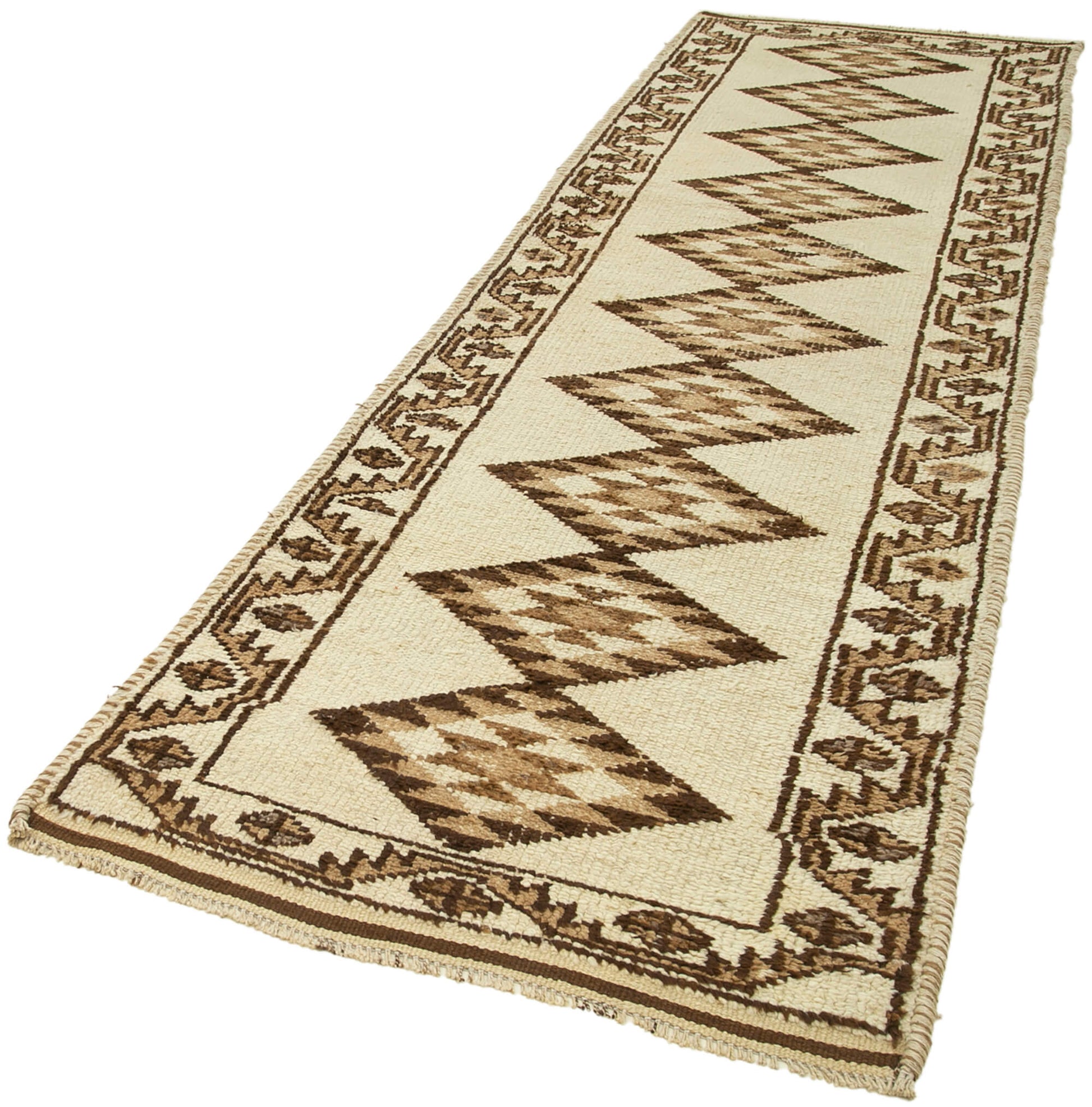 Vintage Handmade Area Rug – Turkish Woven Carpet | Beige Cotton Wool Runner 3'7''x11'8''
