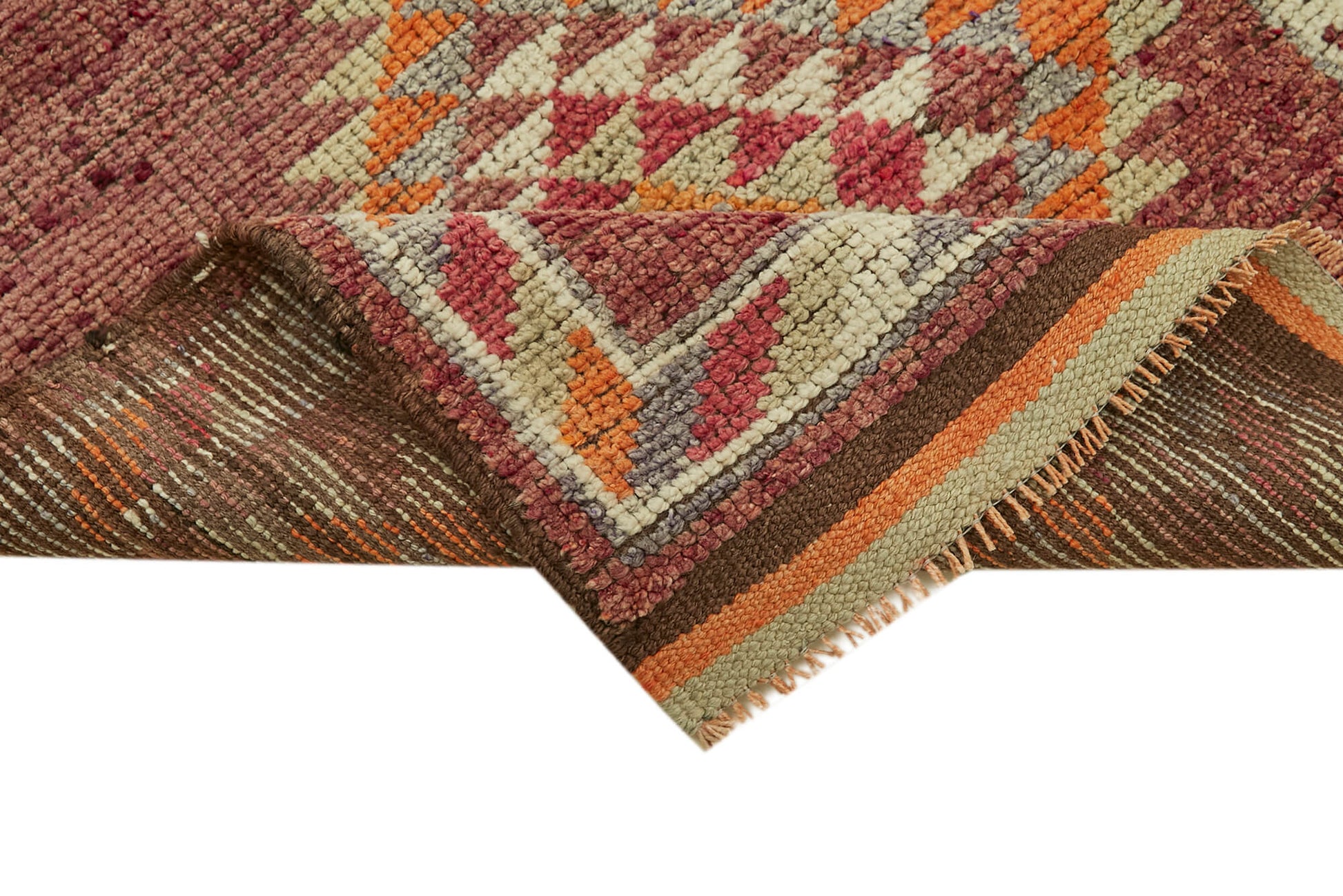 Choose this vintage handmade area rug for a blend of heritage artistry and practical function. Its rich red hues brighten spaces while the sturdy cotton wool composition withstands daily use. Elevate your home décor with a piece that reflects tradition, quality, and timeless style.