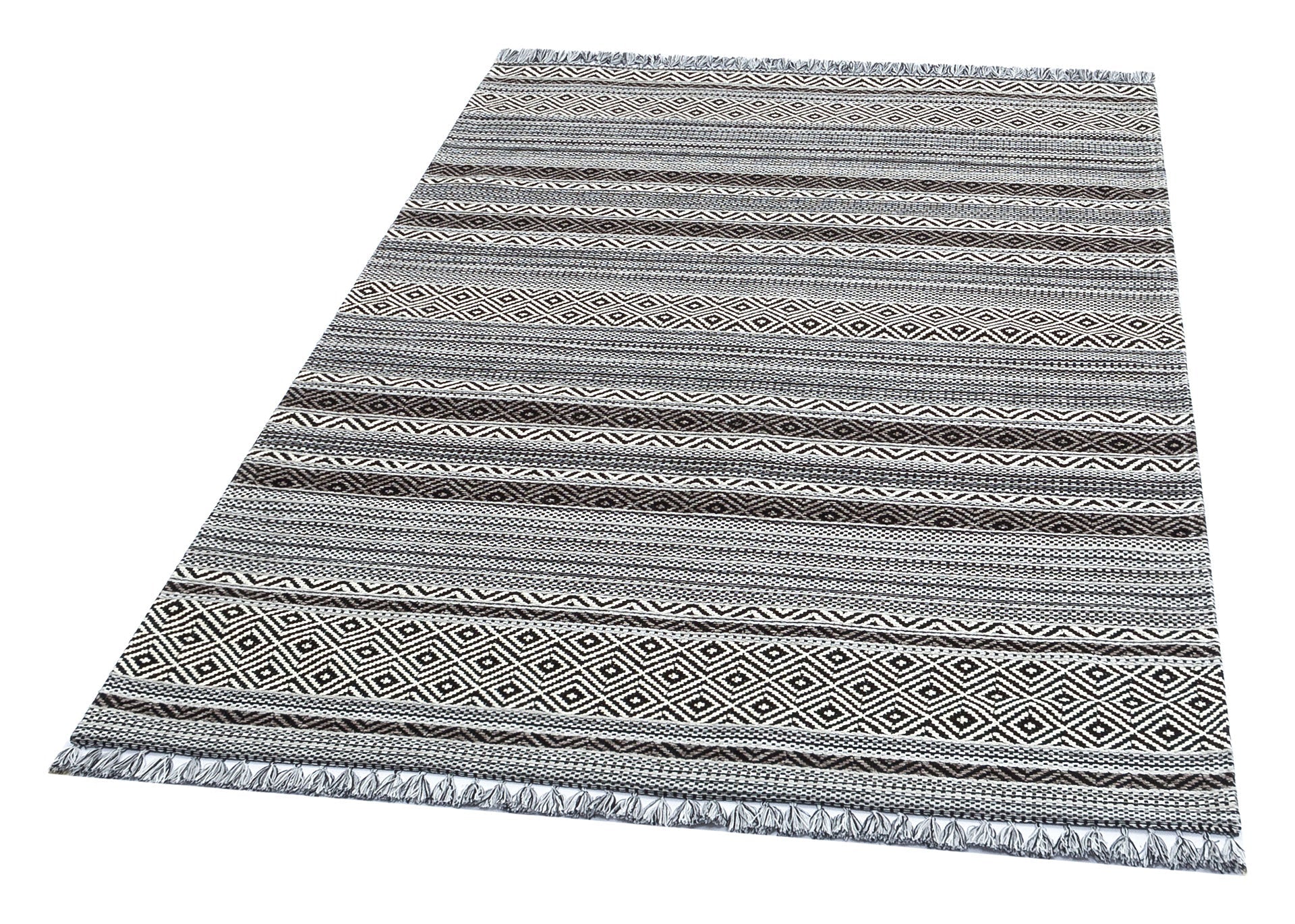Washable Modern Kilim - White Striped Rug | Non Slip Flatweave Area Rug