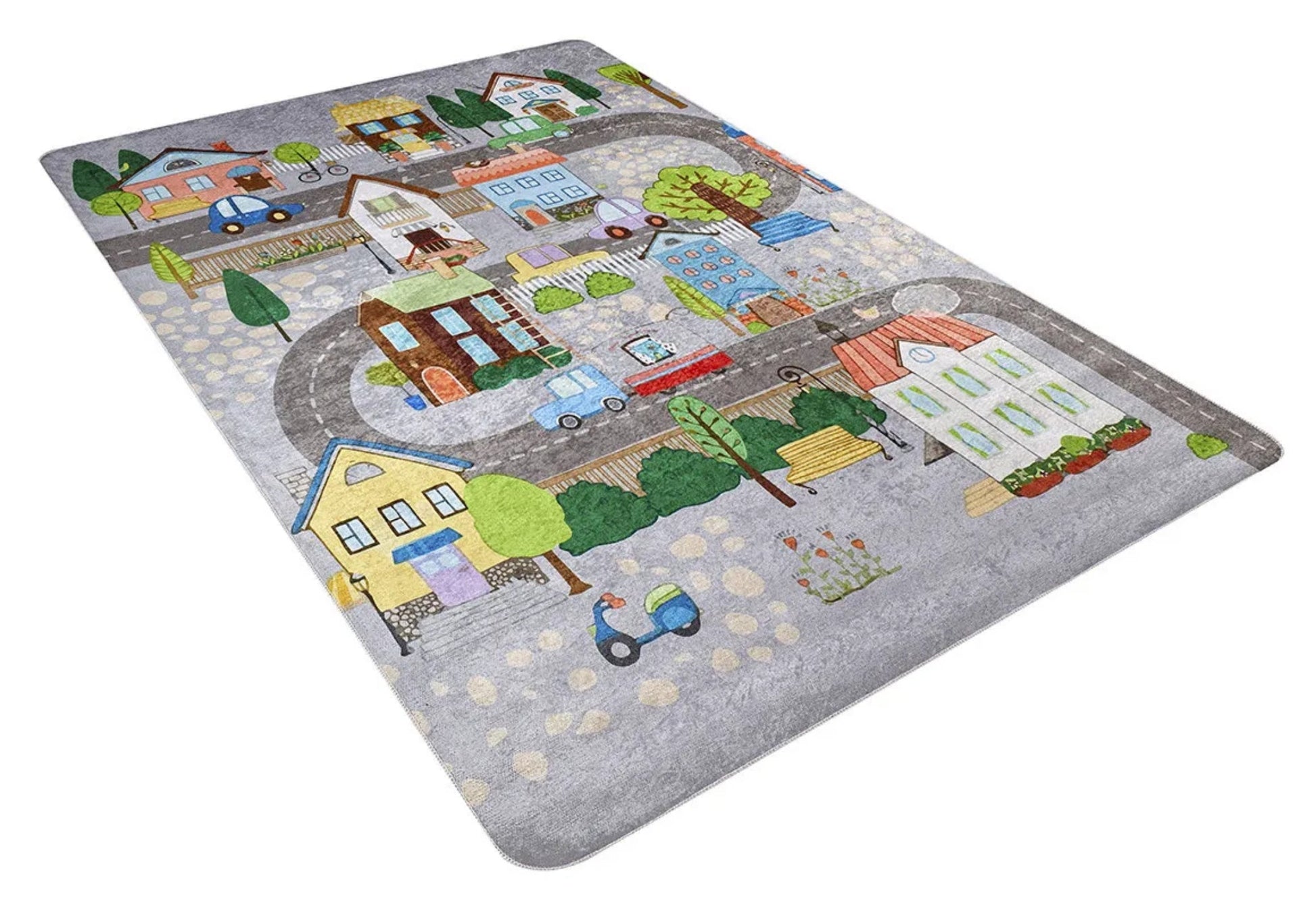 The Kids Cars Rug is a premium grey digital print carpet designed specifically for children's playrooms and bedrooms. This kids cars rug transforms any space into a fun and safe area for your child to play, featuring a vibrant car pattern rug that sparks imagination while providing a soft floor covering. Made from high-quality materials, this children's carpet is antibacterial and allergy friendly, ensuring a healthy environment for your little ones. The non slip kids rug design prevents accidents, making it perfect for active play. Measuring [insert specific dimensions], it fits perfectly in any kids bedroom carpet setup or playroom rug arrangement.
