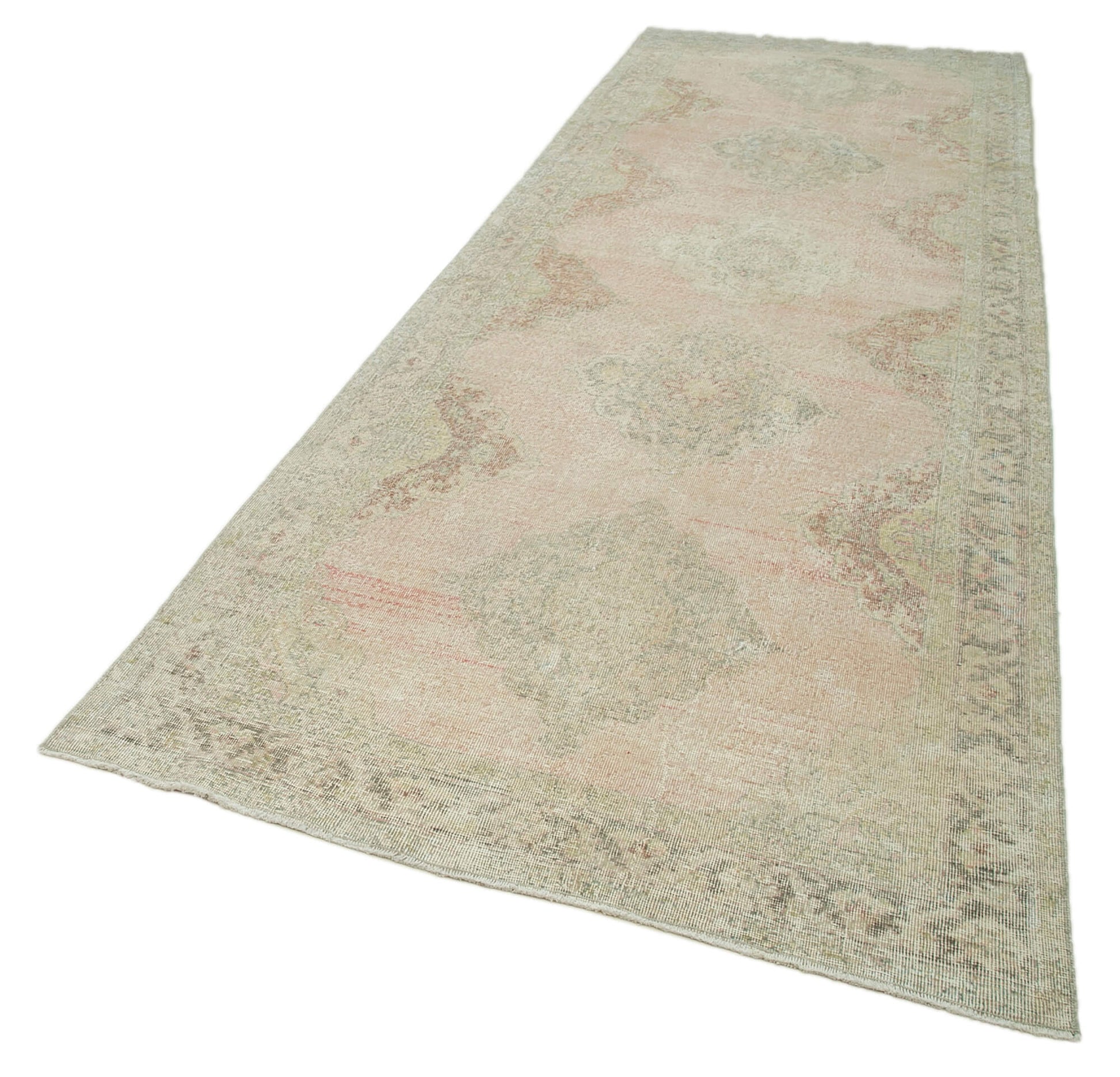 Vintage Cotton Wool Rug - Handmade Turkish Hand Knotted Carpet 4'6'' x 13'3'' Beige
